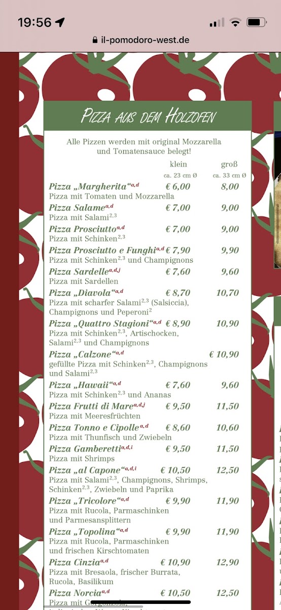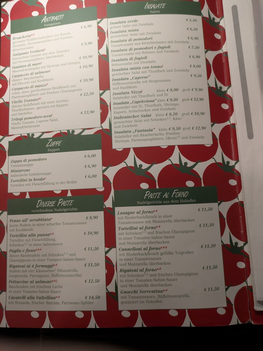 The Il Pomodoro S-West Menu offers a delightful experience for anyone who loves authentic Italian flavors. Located at Silberburgstraße 72 in Stuttgart, Germany, this charming restaurant serves up a variety of dishes that showcase the heart and soul of Italy’s rich culinary tradition. Whether you're in the mood for a classic pizza, a hearty pasta dish, or a fresh salad, there's something on the menu for every craving. Each dish is made with carefully sourced ingredients, ensuring a taste that's both fresh and satisfying. The pizza, with its perfectly crispy crust and mouth-watering toppings, is a favorite for many, while the pasta dishes, featuring traditional sauces and perfectly cooked noodles, never fail to impress. If you're looking for something lighter, the salads, with vibrant veggies and zesty dressings, are the perfect choice. No matter what you choose, every bite at Il Pomodoro is a reminder of the simple joys of Italian dining.